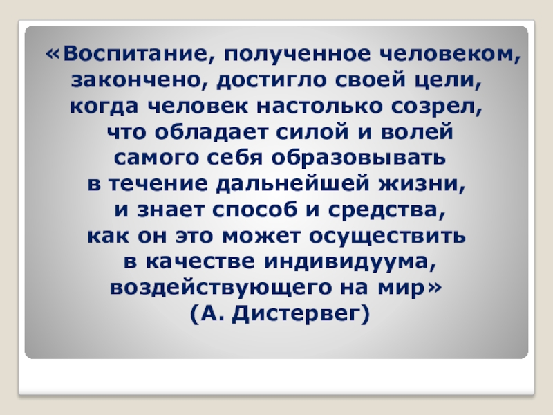 Слайд 12 «Воспитание, полученное человеком, закончено, достигло своей цели, когда человек настолько