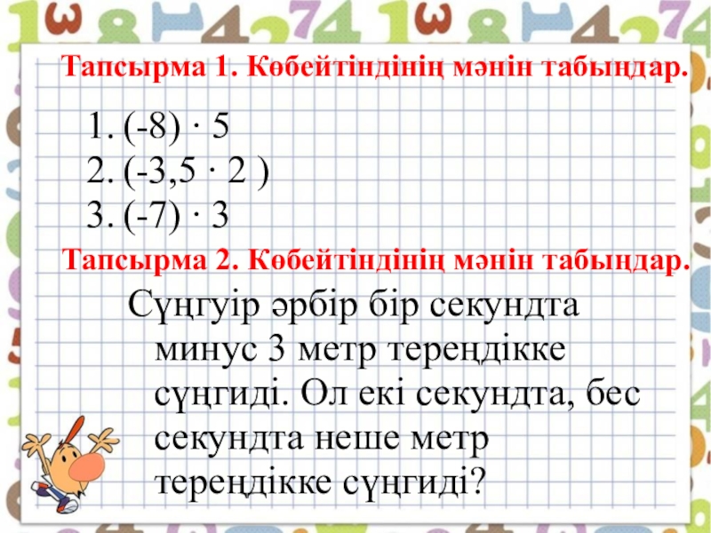 Тапсырма 2. Көбейтіндінің мәнін табыңдар.