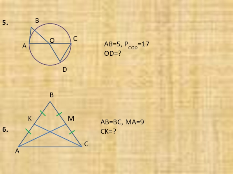ABCDOAB=5, PCOD=17OD=?5.6.ABCMKAB=BC, MA=9CK=?
