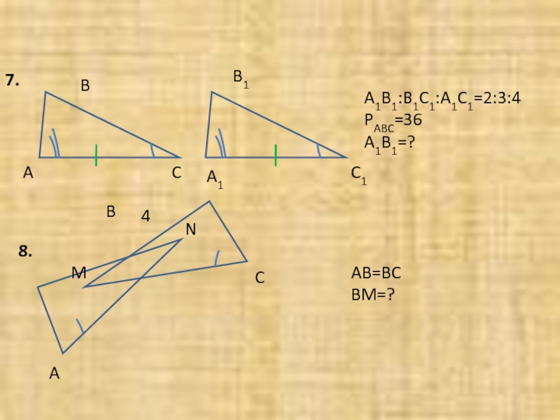 AA1B1CC1B7.A1B1:B1C1:A1C1=2:3:4PABC=36A1B1=?8.ABNCM4AB=BCBM=?