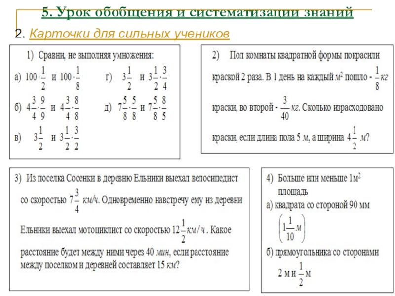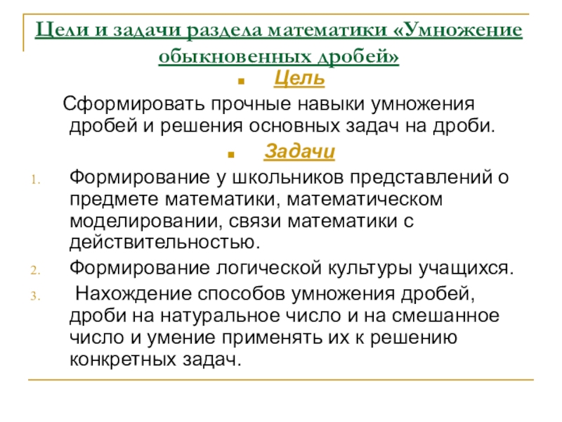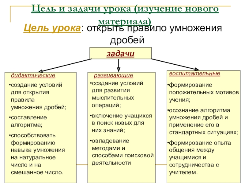 способствовать формированию навыка умножения на натуральное число и на смешанное число.