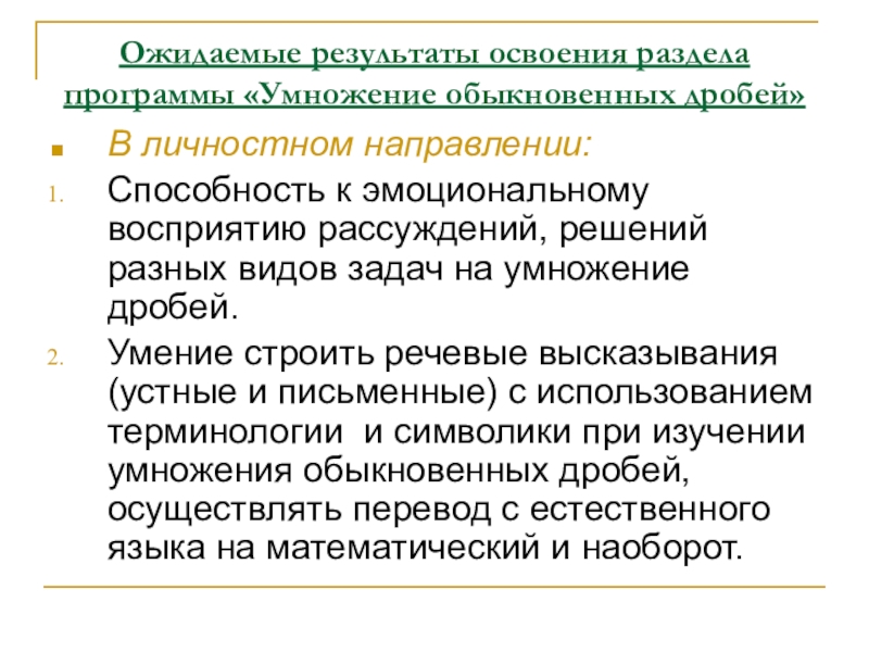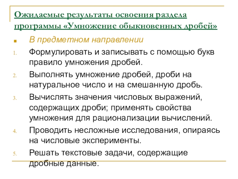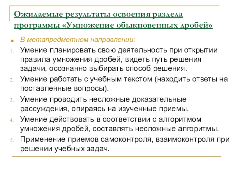 осознание алгоритма умножения дробей и применение его в стандартных ситуациях;