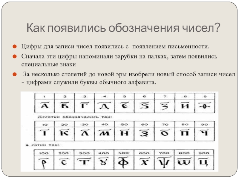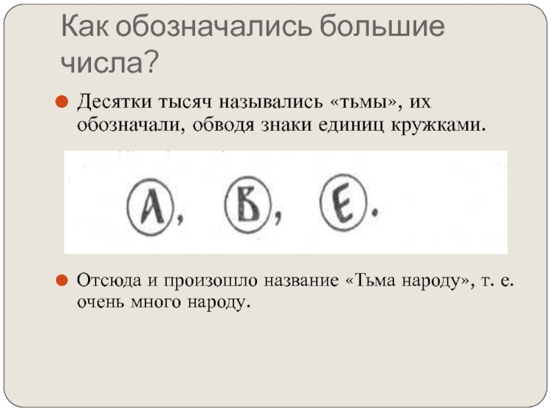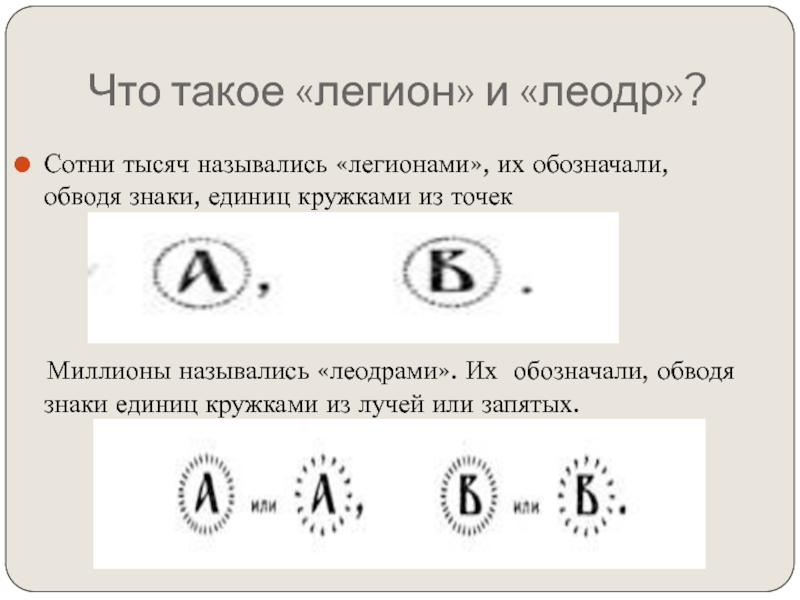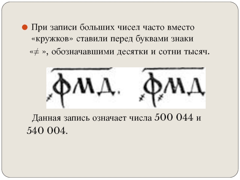 Слайд 9При записи больших чисел часто вместо «кружков» ставили перед буквами знаки