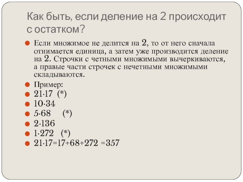 Слайд 22Как быть, если деление на 2 происходит с остатком?