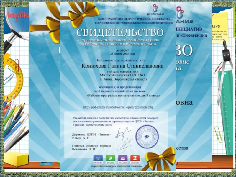 Слайд 14Одним из путей развития профессиональной компетентности педагога является его участие в конкурсах