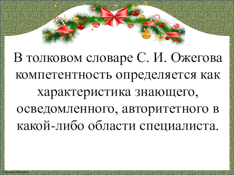 Слайд 3В толковом словаре С. И. Ожегова компетентность определяется как характеристика знающего,