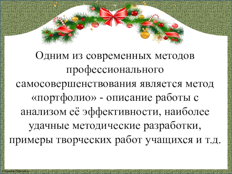 Слайд 22Одним из современных методов профессионального самосовершенствования является метод «портфолио» - описание