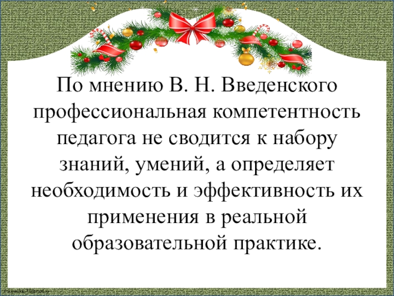 Слайд 4По мнению В. Н. Введенского профессиональная компетентность педагога не сводится к