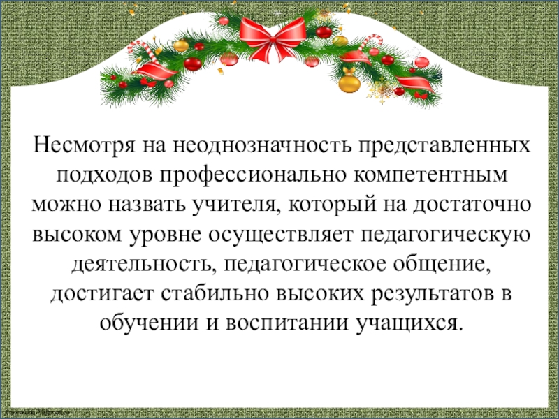 Слайд 5Несмотря на неоднозначность представленных подходов профессионально компетентным можно назвать учителя, который