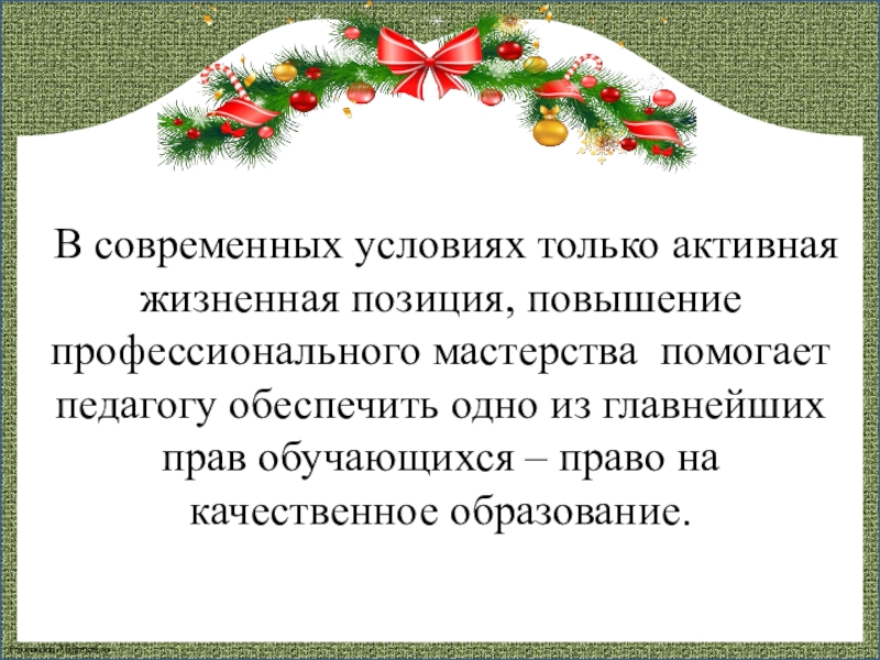 Слайд 24В современных условиях только активная жизненная позиция, повышение профессионального мастерства помогает
