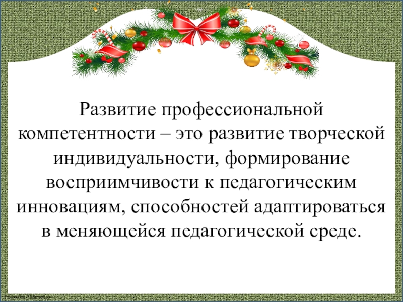 Слайд 6Развитие профессиональной компетентности – это развитие творческой индивидуальности, формирование восприимчивости к