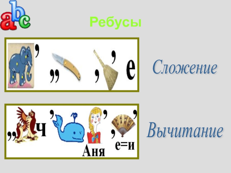 Ребус – это загадка, в которой искомое слово или фраза изображены в виде