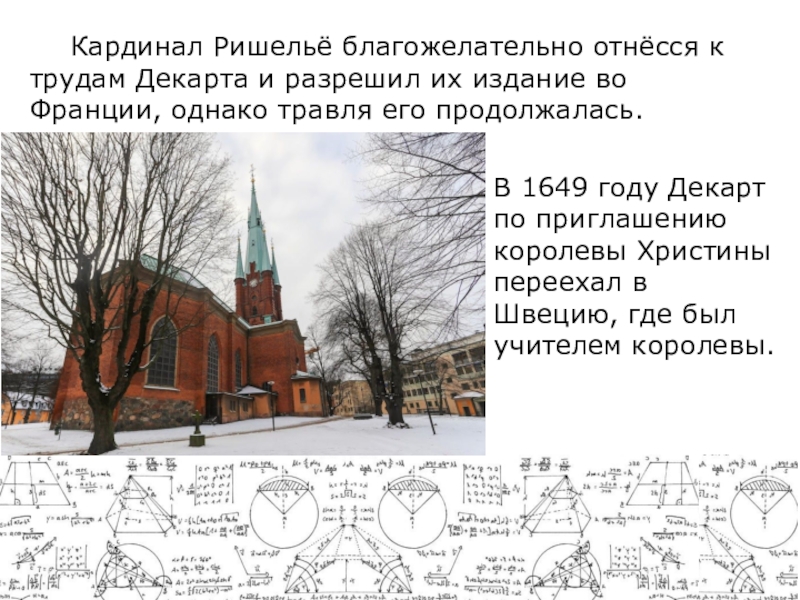 Кардинал Ришельё благожелательно отнёсся к трудам Декарта и разрешил их издание во Франции, однако травля его продолжалась.