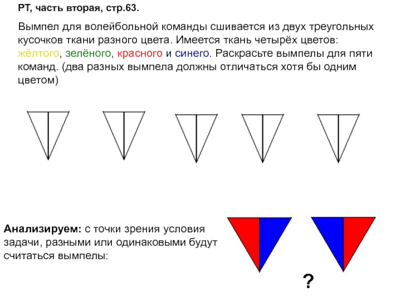 Анализируем: с точки зрения условия задачи, разными или одинаковыми будут считаться вымпелы: