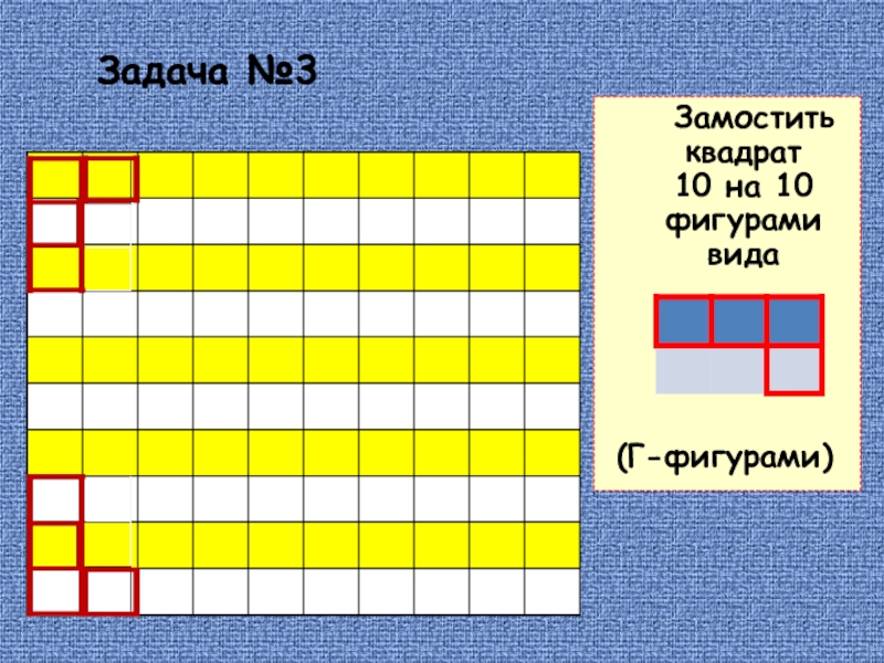 Замостить квадрат          10 на 10 фигурами