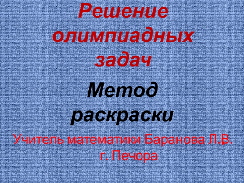 Решение олимпиадных задачМетод раскраскиУчитель математики Баранова Л.В.  г. Печора,