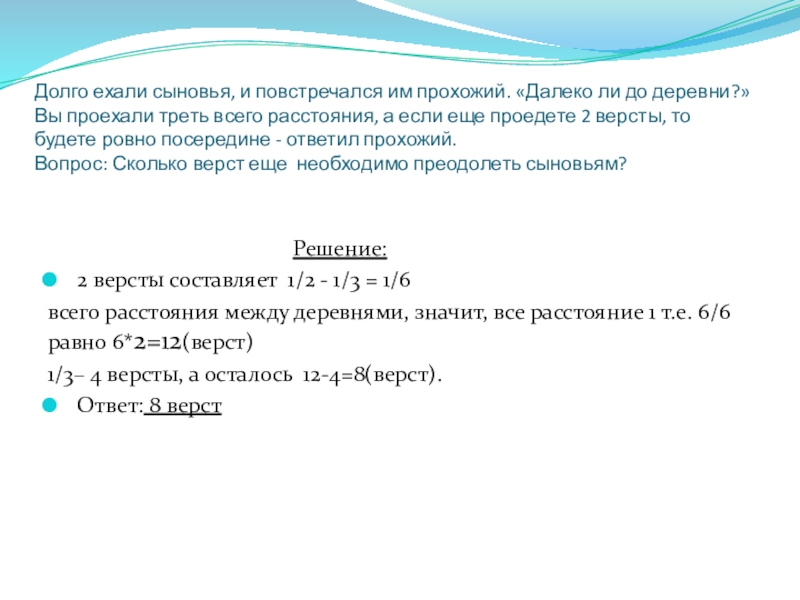 Ответ: 8 верст