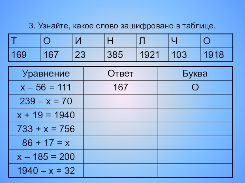Слайд 213. Узнайте, какое слово зашифровано в таблице.