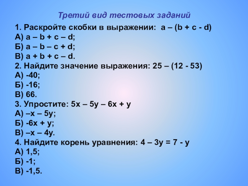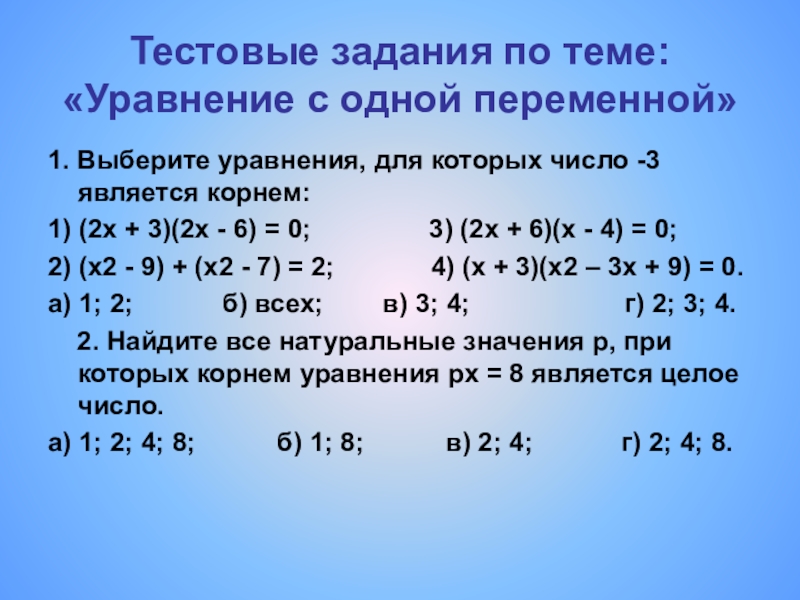 Слайд 40Тестовые задания по теме:
