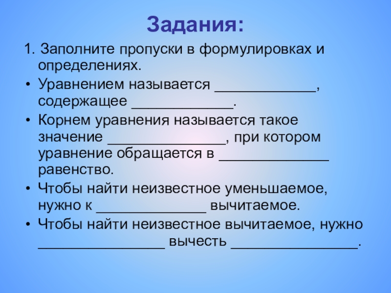Чтобы найти неизвестное вычитаемое, нужно _______________ вычесть _______________.