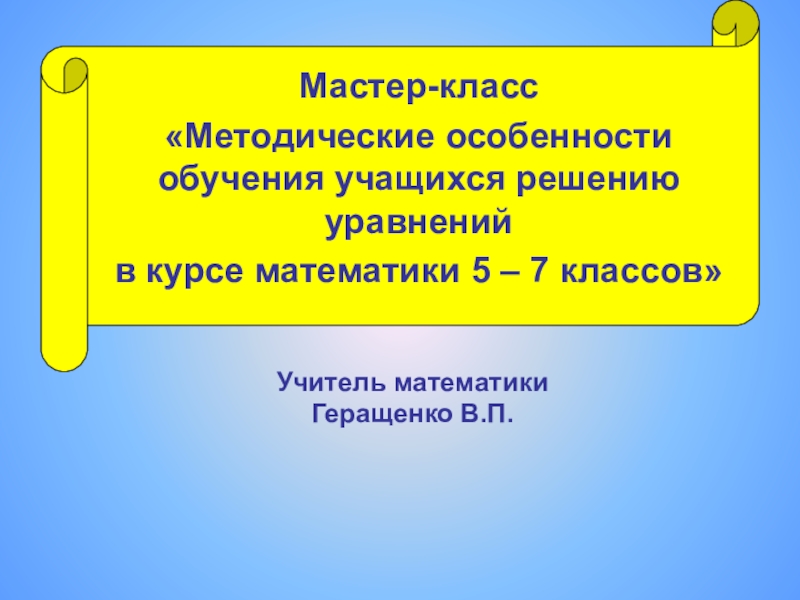 «Методические особенности обучения учащихся решению уравнений
