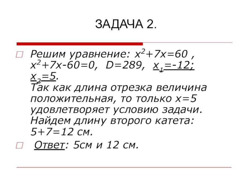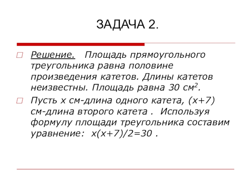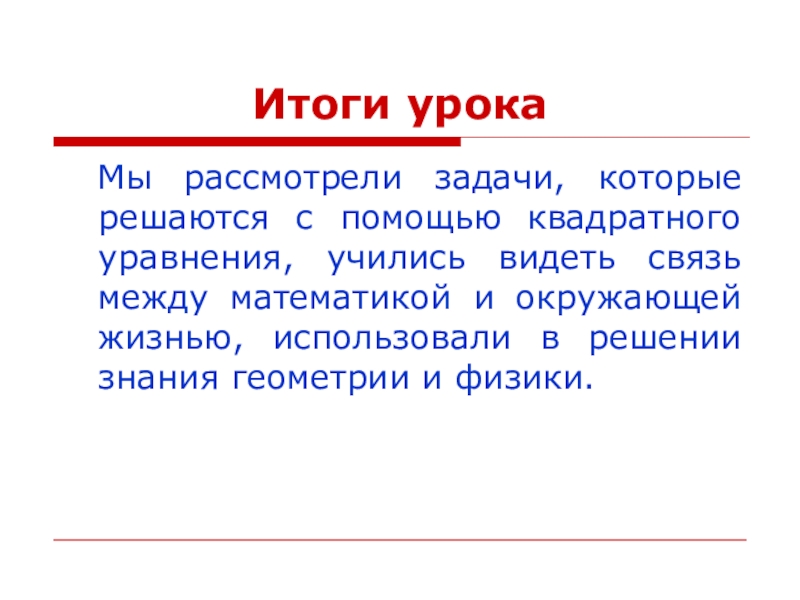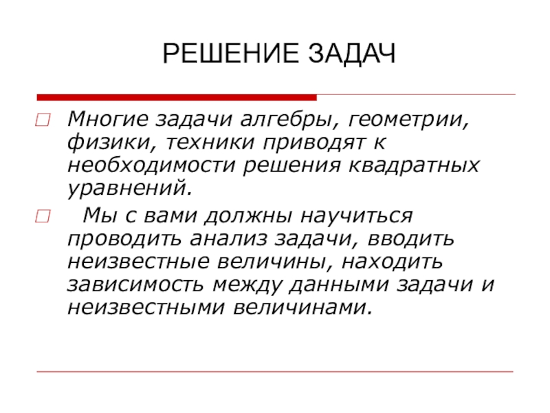 ТЕМА УРОКА: РЕШЕНИЕ ЗАДАЧ С ПОМОЩЬЮ КВАДРАТНОГО УРАВНЕНИЯ