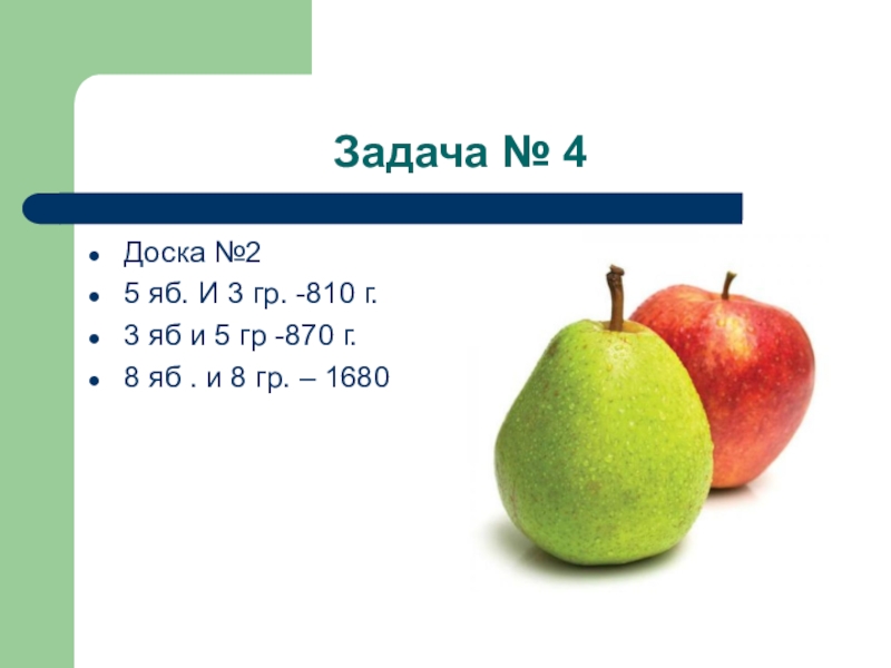Задача № 4Доска №25 яб. И 3 гр. -810 г.3 яб и 5 гр -870 г.8 яб