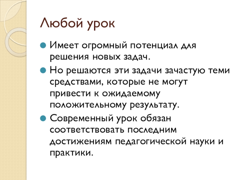 Современный урок обязан соответствовать последним достижениям педагогической науки и практики.
