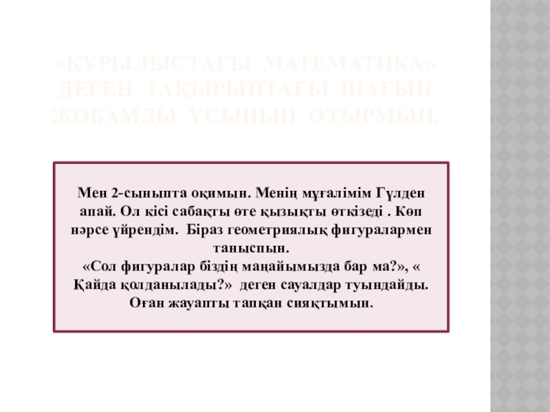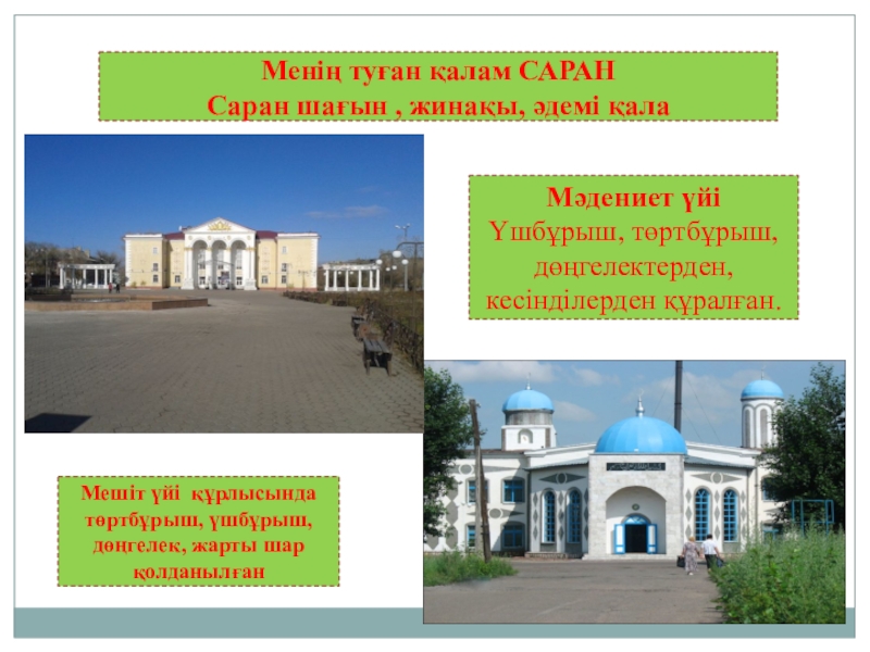 Мешіт үйі құрлысында төртбұрыш, үшбұрыш, дөңгелек, жарты шар қолданылған
