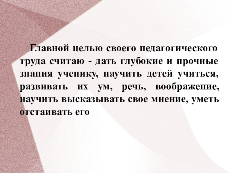 Главной целью своего педагогического труда считаю - дать глубокие и прочные знания ученику,