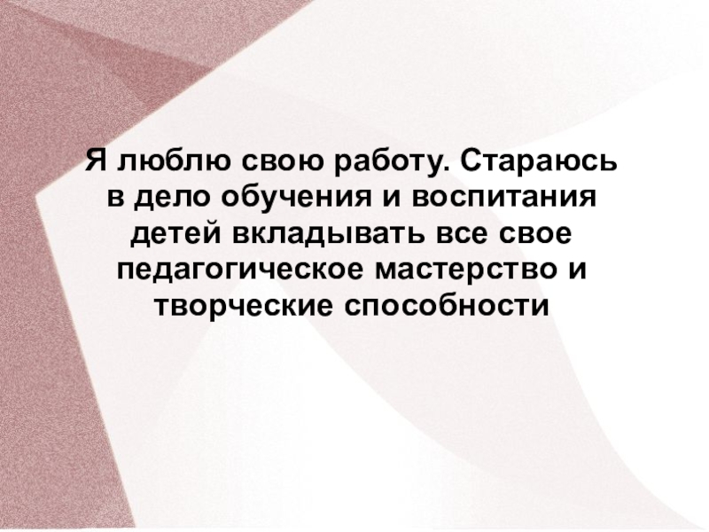 Слайд 22Я люблю свою работу. Стараюсь в дело обучения и воспитания детей