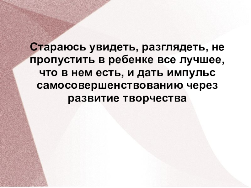 Слайд 20Стараюсь увидеть, разглядеть, не пропустить в ребенке все лучшее, что в
