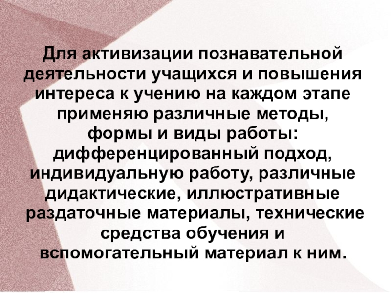 Слайд 9Для активизации познавательной деятельности учащихся и повышения интереса к учению на