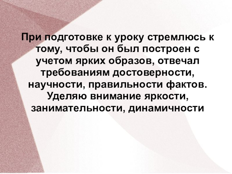 с учетом ярких образов, отвечал требованиям достоверности, научности, правильности фактов. Уделяю внимание яркости, занимательности, динамичности