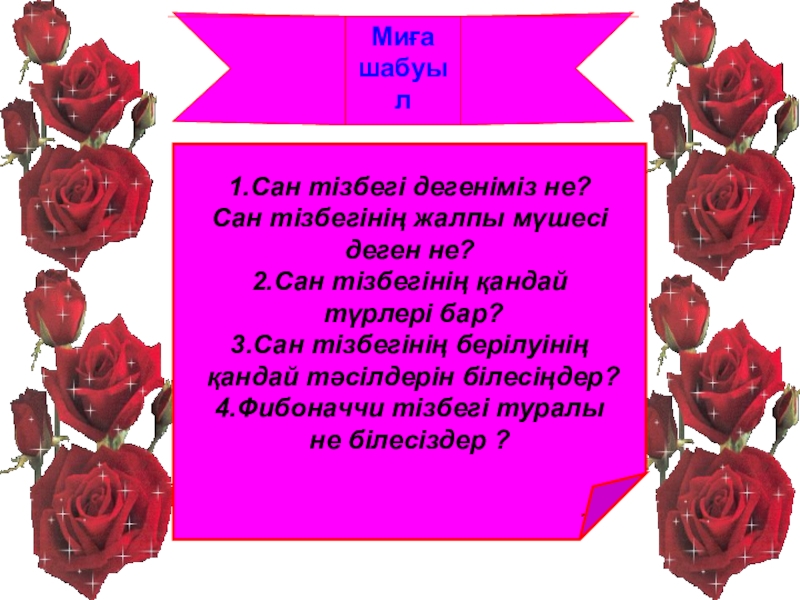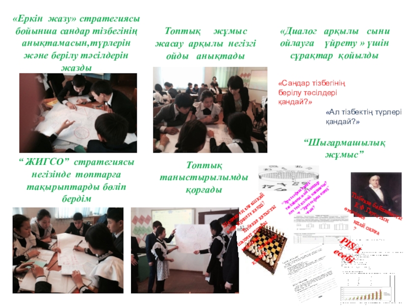 «Еркін жазу» стратегиясы бойынша сандар тізбегінің анықтамасын,түрлерін және берілу тәсілдерін жазды
