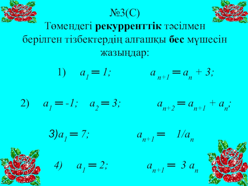 3.Сандар тізбегінің рекурренттік тәсілі.