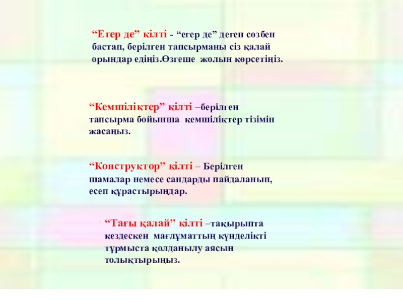 “Конструктор” кілті – Берілген шамалар немесе сандарды пайдаланып, есеп құрастырыңдар.