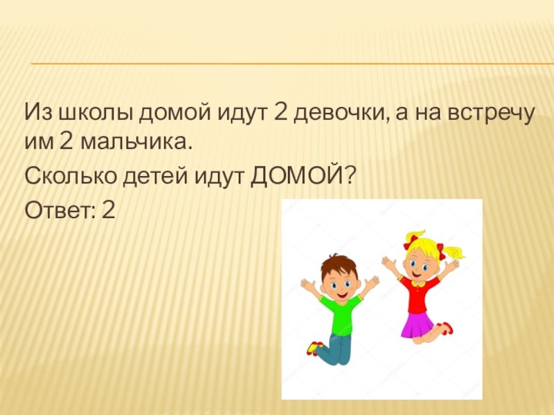 Слайд 23Из школы домой идут 2 девочки, а на встречу им 2