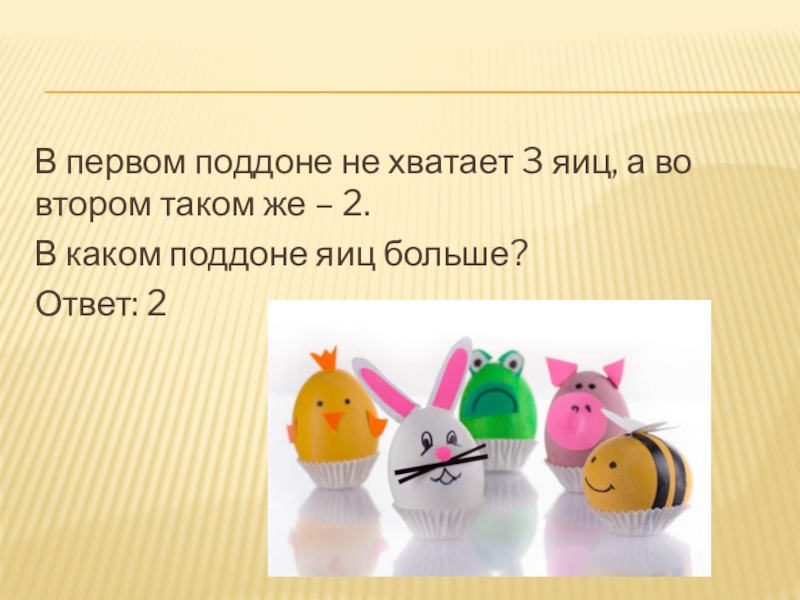 Слайд 27В первом поддоне не хватает 3 яиц, а во втором таком