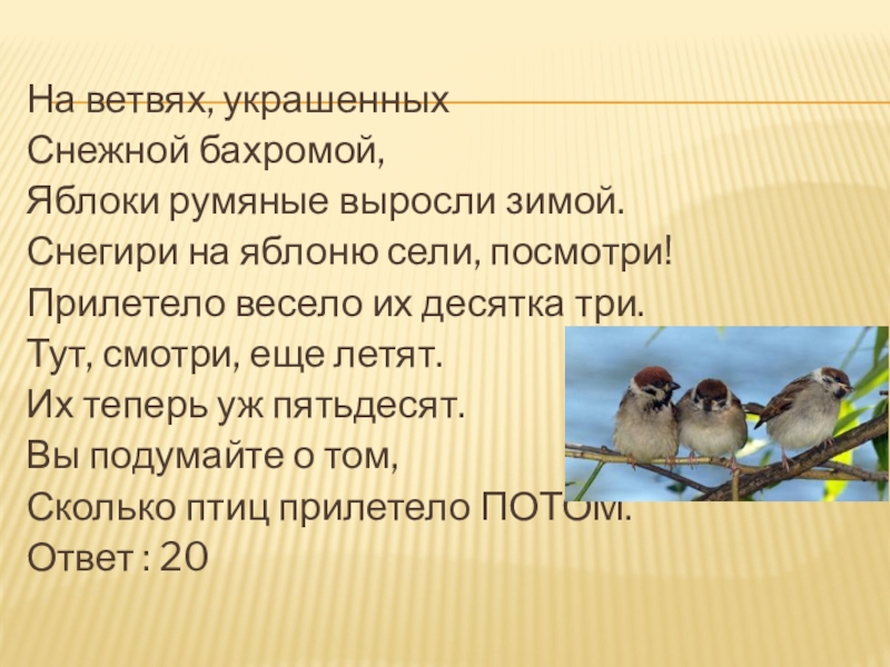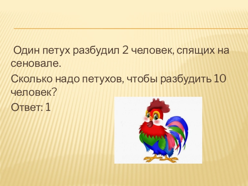 Слайд 21 Один петух разбудил 2 человек, спящих на сеновале.