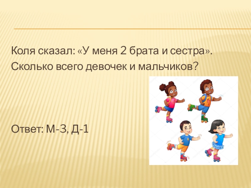 Слайд 24Коля сказал: «У меня 2 брата и сестра».