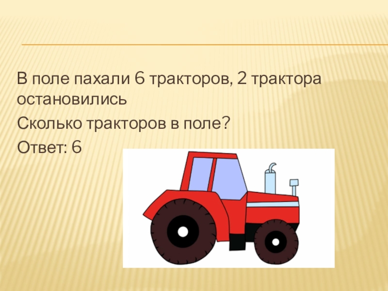 Слайд 35В поле пахали 6 тракторов, 2 трактора остановились