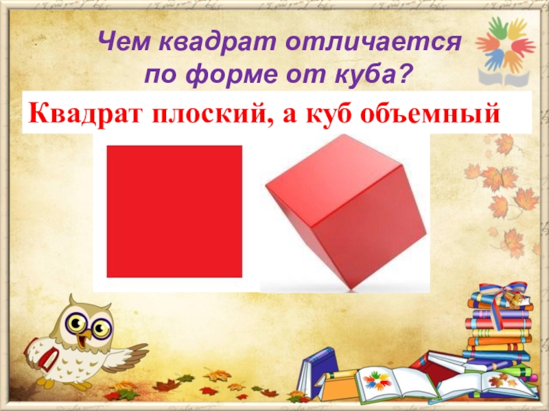 Слайд 8Чем квадрат отличается по форме от куба?