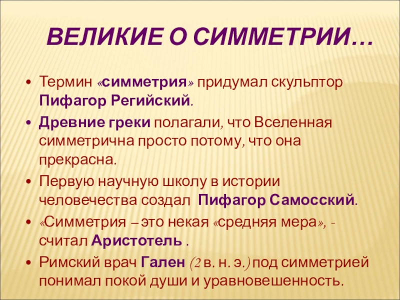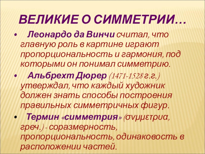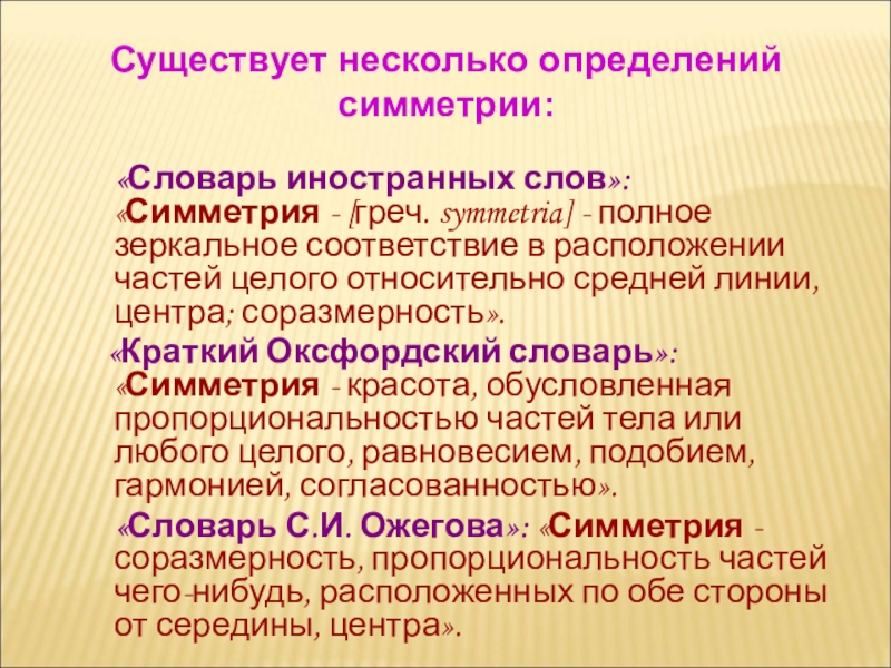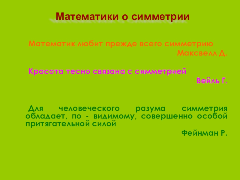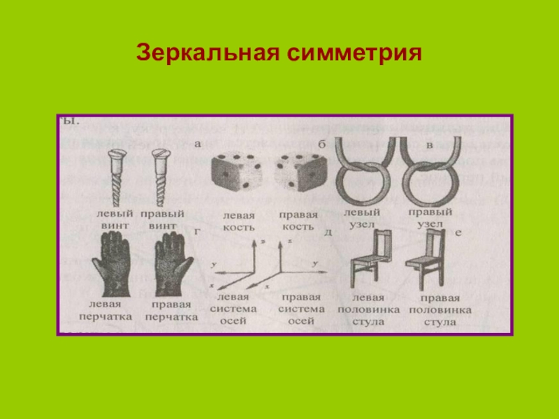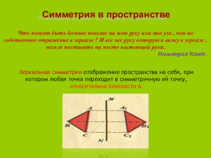 Зеркальная симметрия отображение пространства на себя, при котором любая точка переходит в симметричную ей точку, относительно плоскости а.