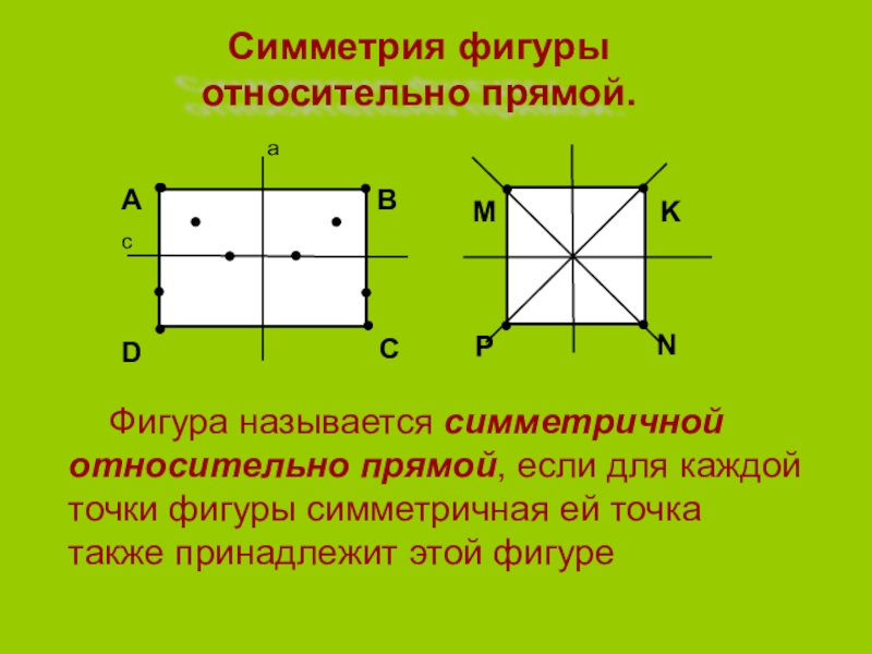 Осевая симметрия отображение пространства на себя, при котором любая точка переходит в симметричную ей точку, относительно оси а.