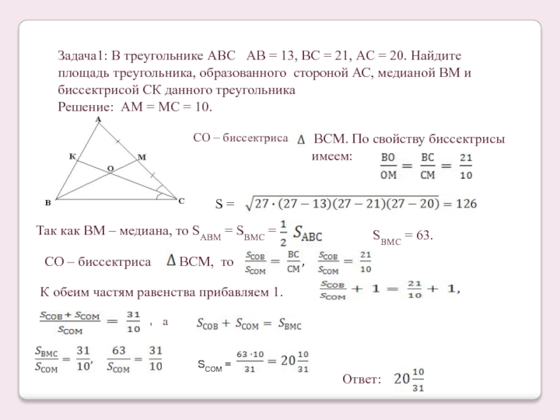 Так как ВМ – медиана, то SАВМ = SВМС =