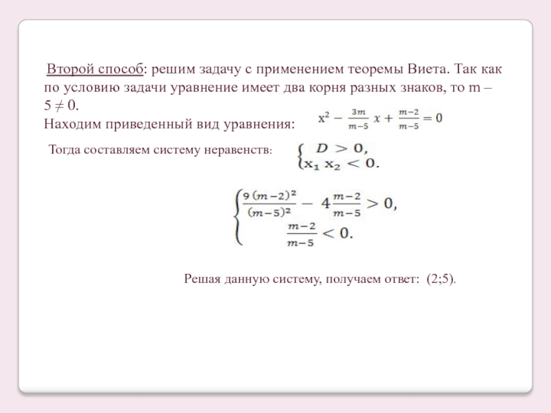 ( m – 5)(m – 2) < 0. Решая данное неравенство получаем ответ: (2;5).