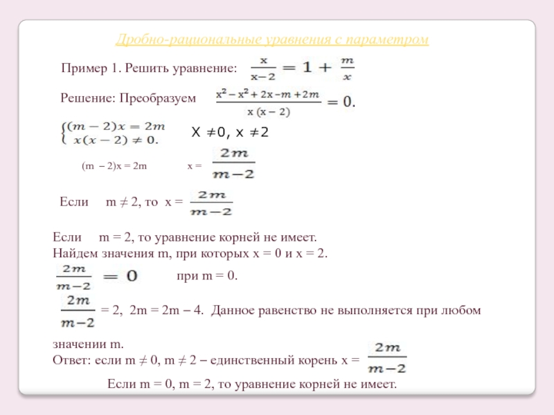 Ответ: если m ≠ 0, m ≠ 2 – единственный корень x =
