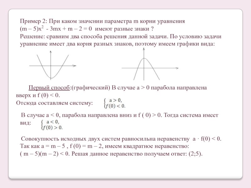 Так как а = m – 5 , f (0) = m – 2, имеем квадратное неравенство: