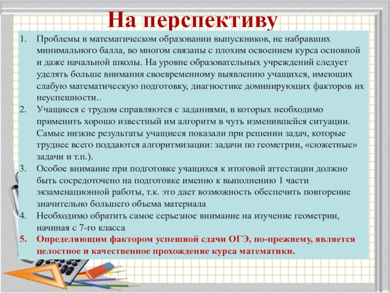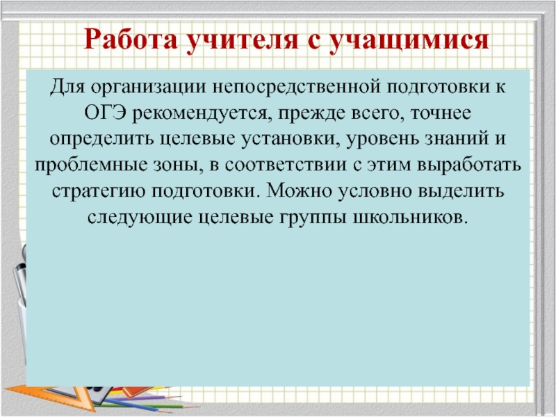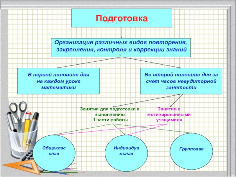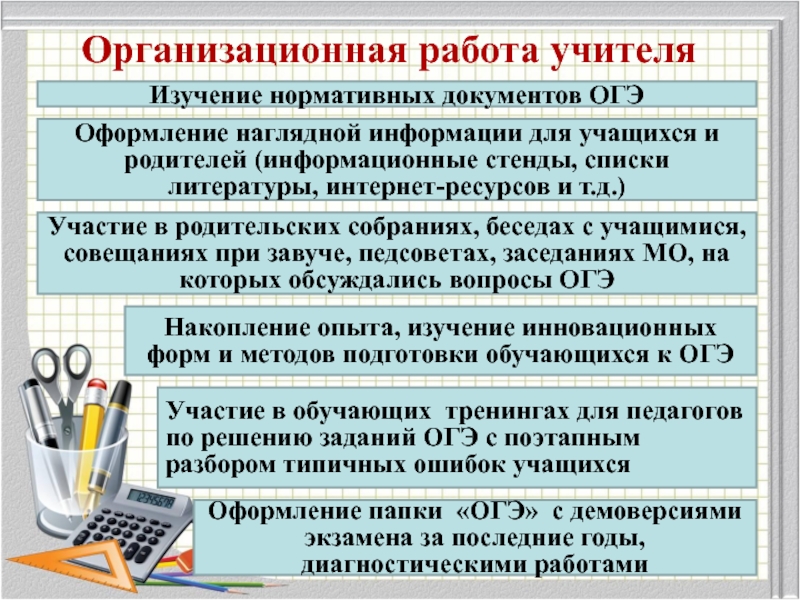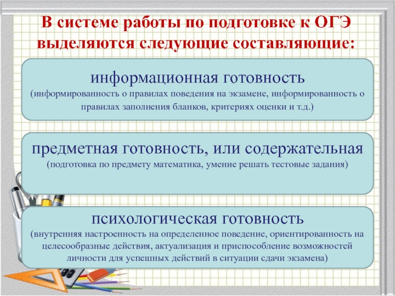 В системе работы по подготовке к ОГЭ выделяются следующие составляющие: